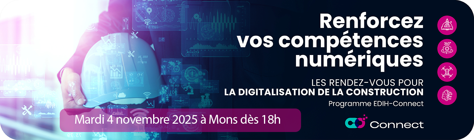 Le CeREF Technique, en collaboration avec les partenaires du projet européen eDIH-Connect, a le plaisir de vous inviter à une soirée consacrée à la digitalisation du secteur de la construction, le mardi 4 novembre 2025 à dès 18h00, sur le campus HELHa à Mons.